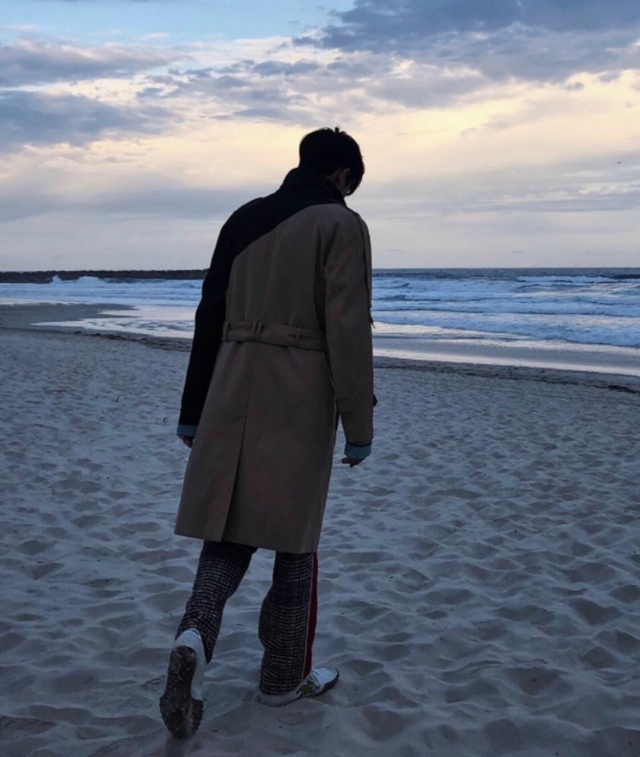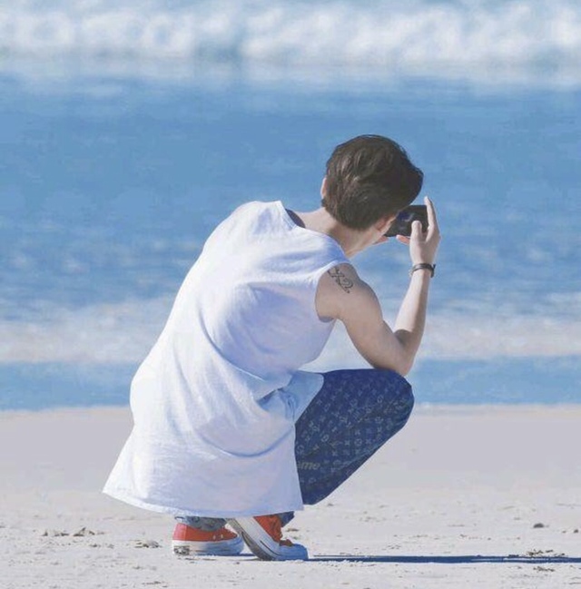 他們拍照拍一拍,一下子就玩累了,滑了滑手機,看到林彥俊和紀晴同時發微博他們在海邊各自的背影照