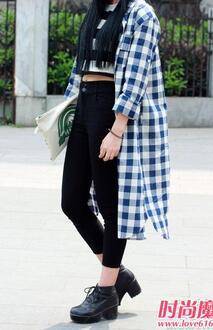 这是车里的两个人下来了,女生头上戴了一个鸭舌帽,栗色的头发垂直到腰间,上身里面穿着黑白条纹露肚脐的背心,外面穿着灰.白.蓝.三种颜色的格子外衣,长到小腿,下身穿着,黑色高腰紧身裤,鞋子是黑车色高跟鞋整体是这样的