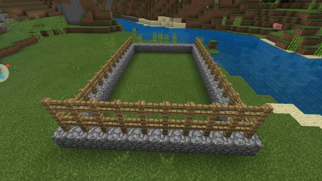 粉凤瞳晓怡首先,我们找一块场地,用圆石围上。围上之后还要用栅栏,前面空着。