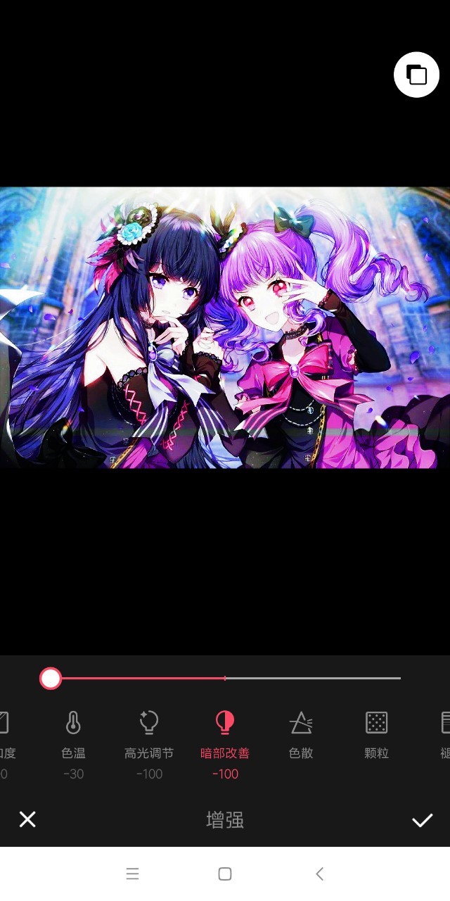 作者高光调到负100,暗部改善也是。因为光线太多了,所以要加暗。
