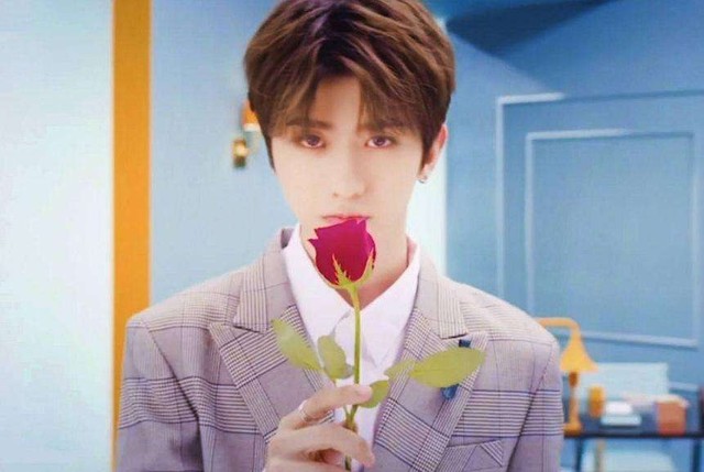 蔡徐坤拿着餐桌上的玫瑰花走向顾小语。认真的眼神摄人心魂。