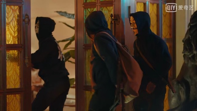 而外面此时正好,走下来三个穿着黑色衣服,戴着吓坏小朋友的面具从车上走下来。