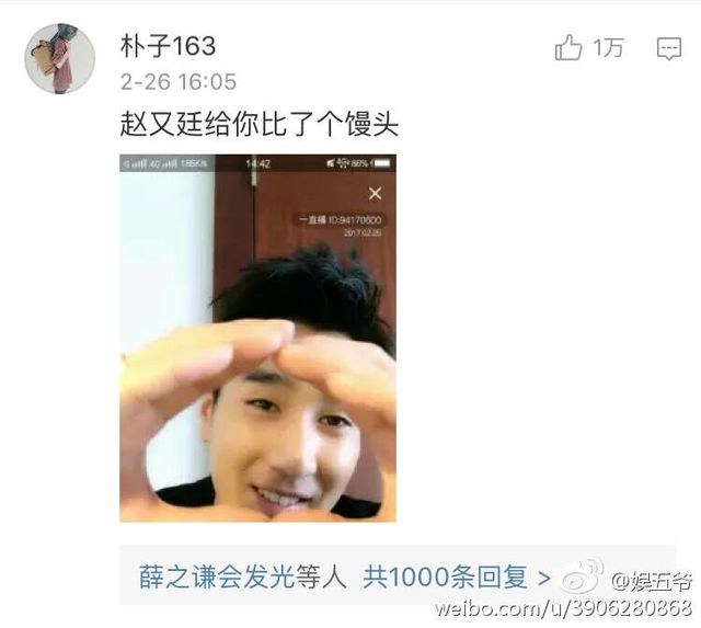 赵又廷给你比了个馒头