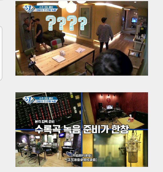 嗯,大家可能不太理解录音室是一个怎样的布局,所以我特意到suju的综艺里截了两张录音室的图片: