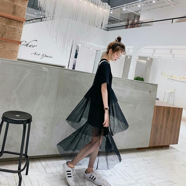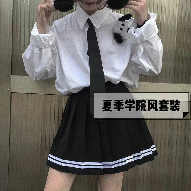 一个穿着校园风裙子的女孩子在街上奔跑着,刚过160的身高和70斤的体重,显得这个女孩子很娇小