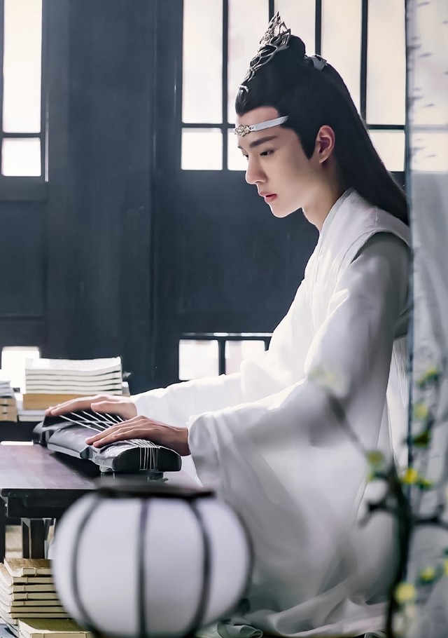 蓝湛伏案而坐,拨弄琴弦,《洗华》清丽明耳的调子从指尖流淌开来。