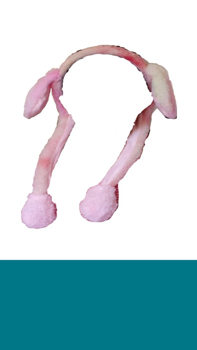 我们俩开心的带着兔子耳朵发卡蹦蹦跳跳的走着