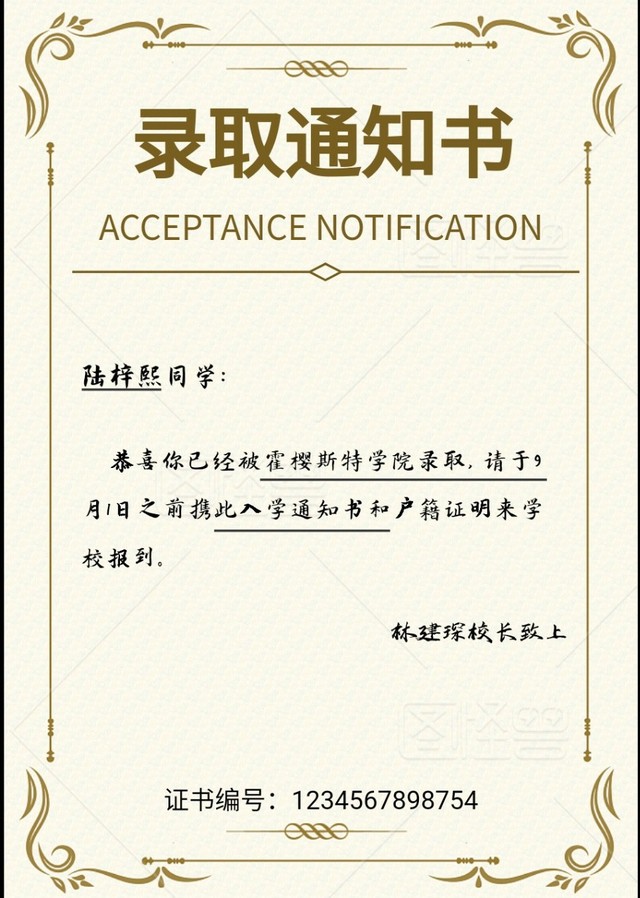 任欣然你们的录取通知书收到了吗?