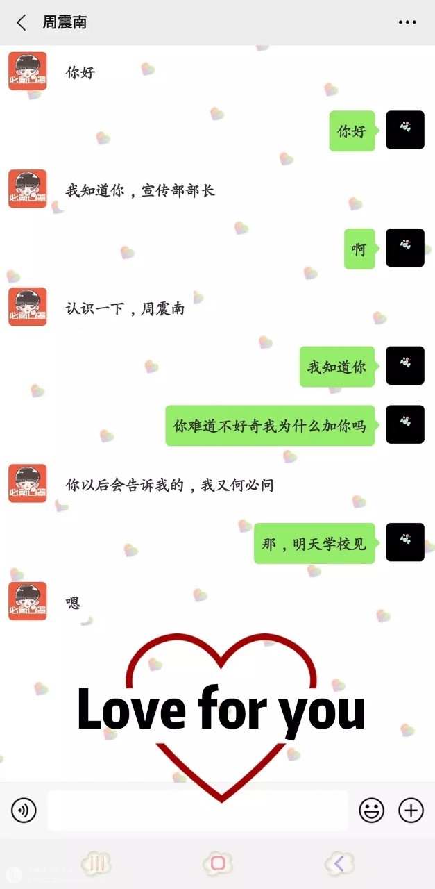 等待的过程是漫长的,你频繁的看着手机,生怕错过他同意你的添加的提示消息。越是久的等待,你越心烦意乱,在你认为他是不是不会同意时,你的手机响了,你看到了微信聊天中出现了他的对话框,你点开思索着要发什么过去时,你看到了上面显示着对方正在去输入,果然没一会周震南发来了消息,你按捺住自己的小兴奋,淡定和他聊着天,当你知道他也知道你时,你的嘴角微微上扬,原来被他知道的感觉这么好。