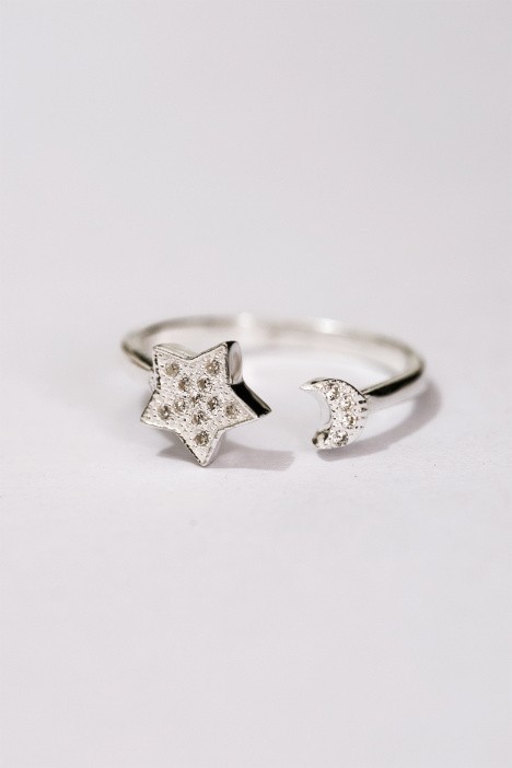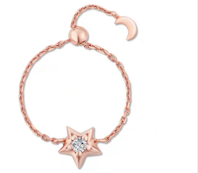 一个首饰盒里面装着一个星星和月亮形状的戒指