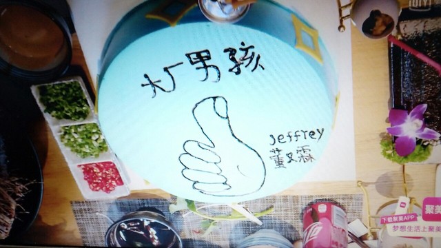 黄明昊怪不得我在想,哪个蛋糕它会画一个大拇指在上面