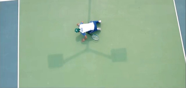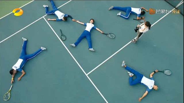 严智明(推了推眼睛)话,不要说的太满。我准备了不同颜色的网球,对应着不同颜色的标志桶,当发球机把球发出来,如果没有打到相同颜色的标志桶就算输。下面,请佳乐为大家展示一下。