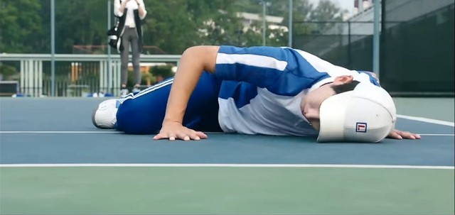 像是做了什么巨大的决定,拿起来球拍