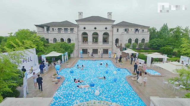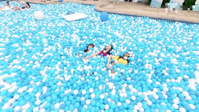 陈美嘉第一次见有人在泳池里铺海洋球的。