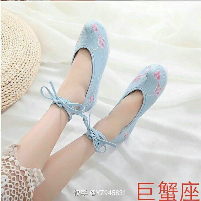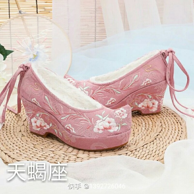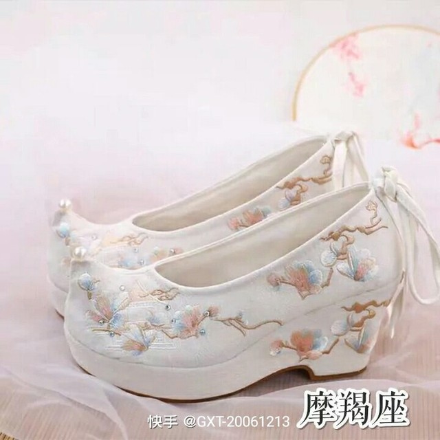 一双白色翘头绣花鞋