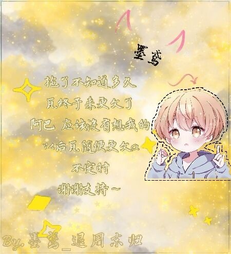 介里鸢崽子...不知不觉,瓦已经不知道拖了多久的更了。感谢一直以来大家的支持,以后的话,我有时间会更新的。当然——没时间“不更”😏。不过我基本上是一周一更吧,毕竟这是我和母亲大人争取了很久的结果...
