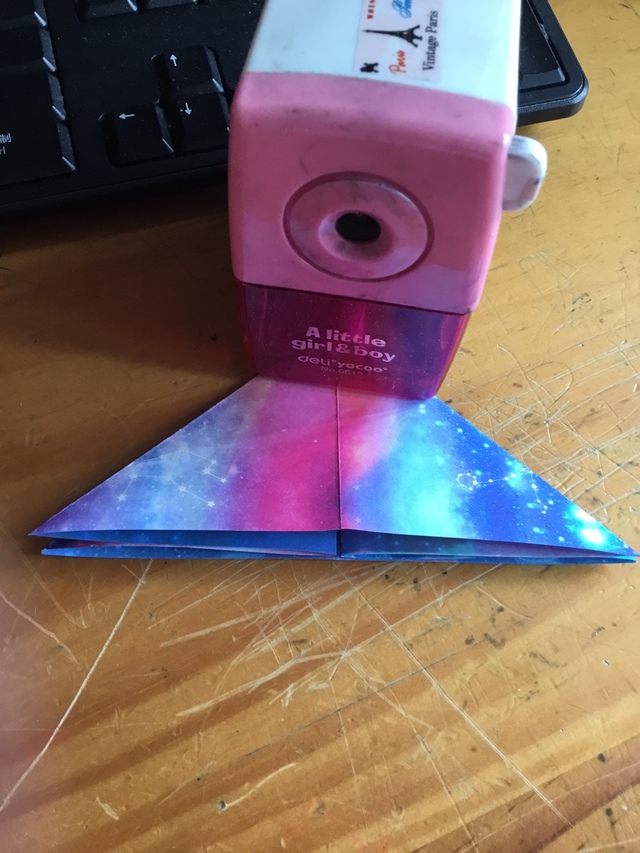 最后把中间那一点对折一下再剪掉,像这样