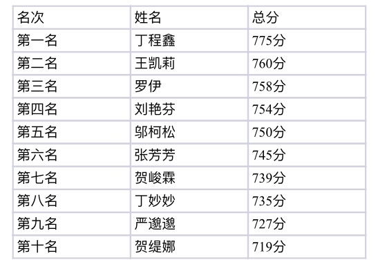 “第一名,丁程鑫同学,满分780分考到了775分的好成绩!”