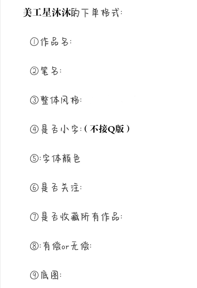 美工星沐沐下单格式如下: