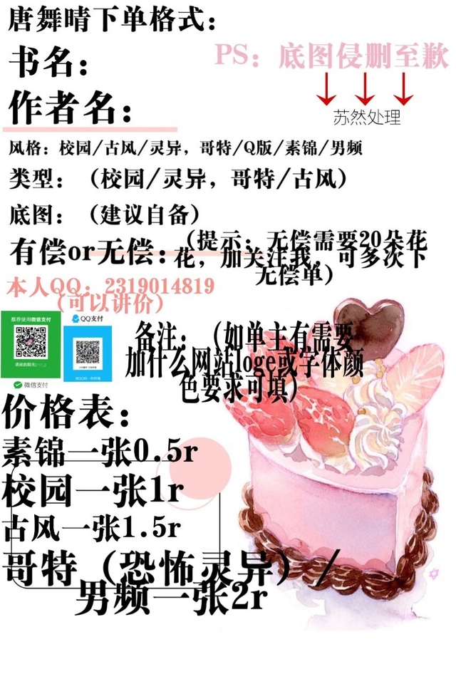 美工唐舞晴下单格式如上
