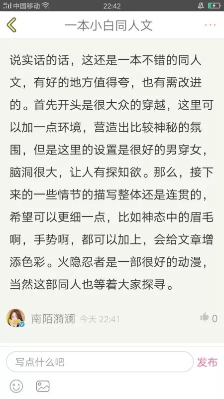 推书者我觉得她写的评论都是很棒的一点都不会敷衍她是属于那一种真的看人家的作品也很实实在在的评论,只是很可惜现在暂时退了,不接单。我给你们看看她写的评论吧