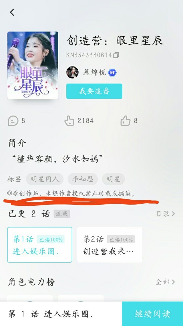 简介里她抄袭我的是“槿华容颜,汐水如嫣”这一句