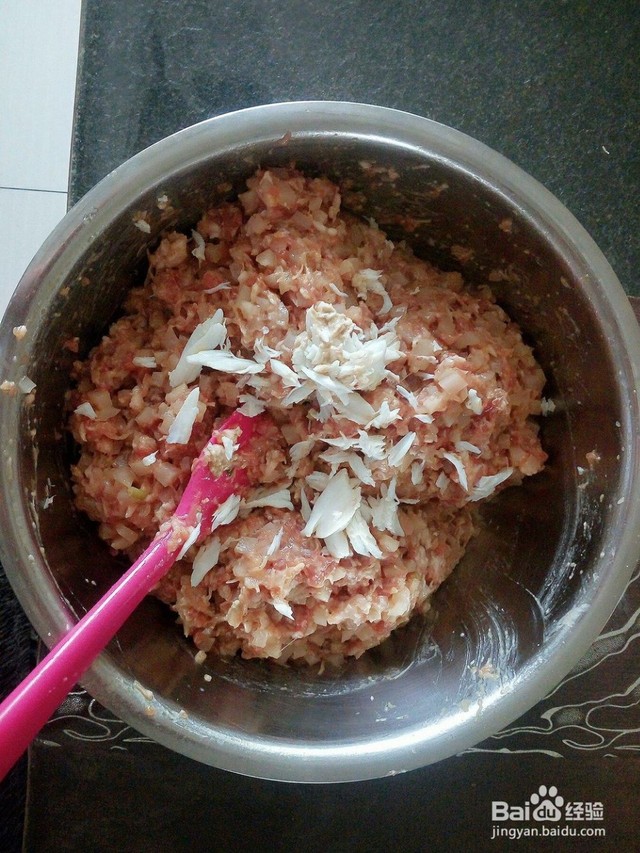 未疏把肉切碎,加一些洋葱和姜后,再加了一些胡椒。还可以放一些炸过的虾油或加上一些味道鲜美的蚝油,可以根据自己的需要随意添加。喜欢多加,不喜欢多加。