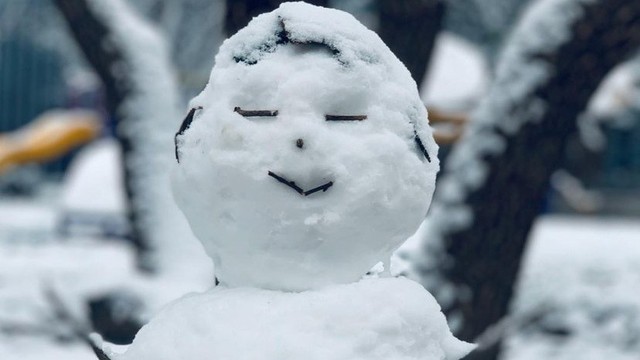 颜馨玩了一会,突然蹲下身把周围的雪都堆在了一起,闵玧其见状也走了过来和她一起堆起了雪人,在两人的手中,没一会,一个简单可爱的雪人就完成了。