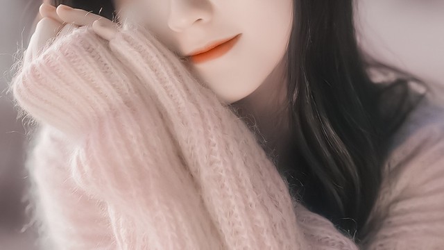 鹿璐托腮,笑得甜美