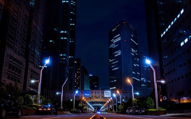夜色浓重,秋风微凉,城市璀璨的灯光远远延伸至天际。