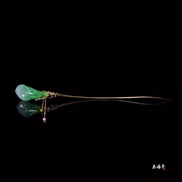 石枫拿着簪子就给胭脂戴在了发髻上,然后又拿起镜子让胭脂看,胭脂看到戴在自己头上的百合花样式的簪子颇为欢喜,笑着对石枫说