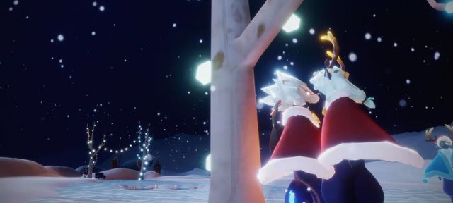 白雪皑皑,龙骨和卡卡也穿上了圣诞气息的红绒斗。