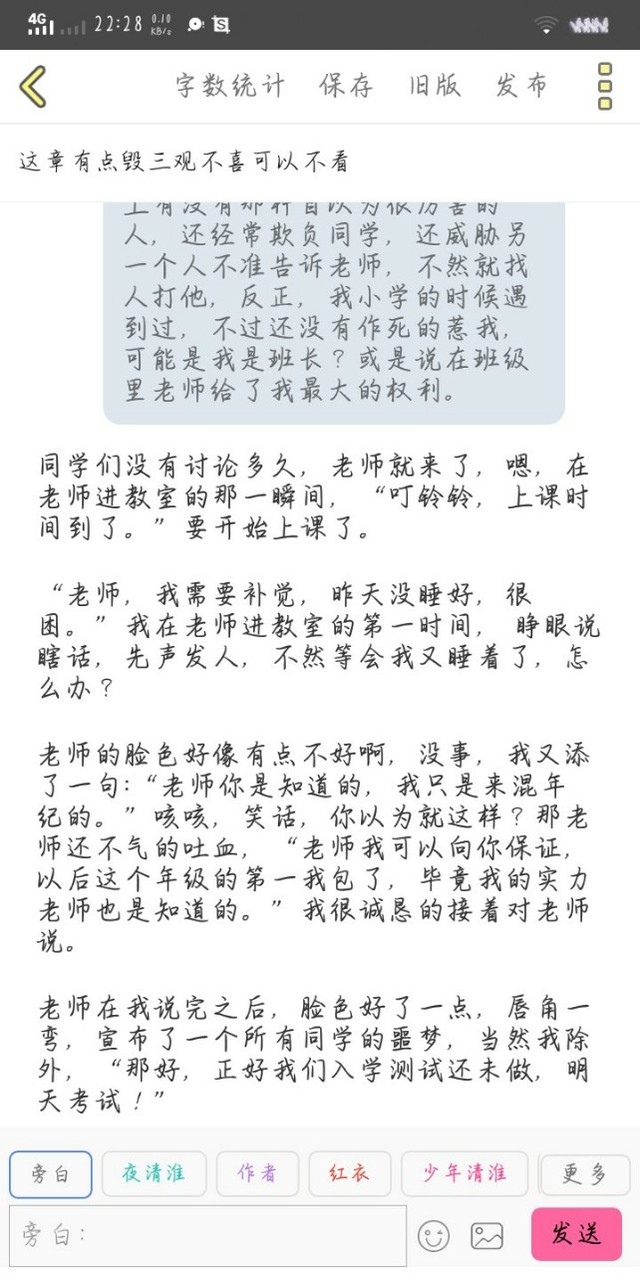 班主任“当然可以,如果明天的测试,你没有如你所说的一般,以后上课都给我乖乖的认真听课。”