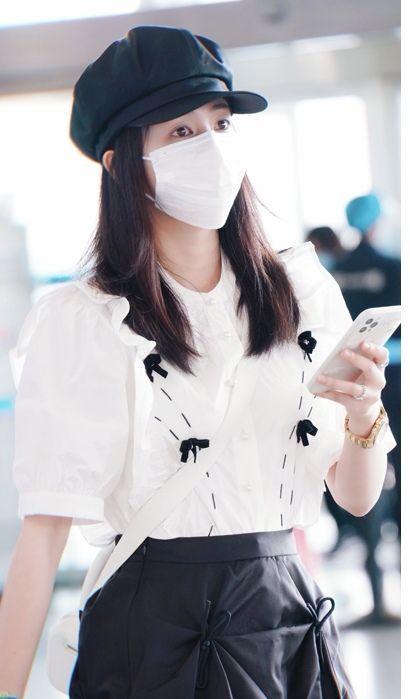 灯光瞬间照耀在邱雨身上,她穿着蝴蝶结泡泡袖衬衫同时搭配着黑色半裙,显得她十分的甜美可爱