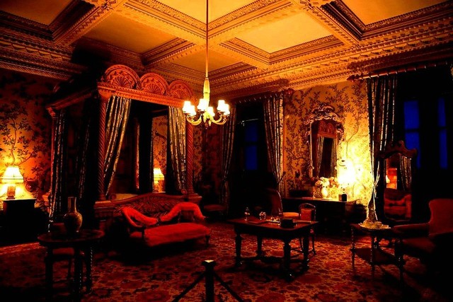 你(顾奇)我操!这房间不错呀!像鬼屋但又不是很像窗户的玻璃竟然是蓝色的,还是第一次见以前见过都是白色或者透明的