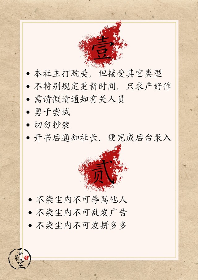 【不染尘】中文写作社团招新简章