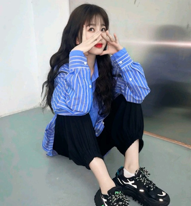 陆之瑶穿着一件蓝白相间的衬衫,显得她特别白