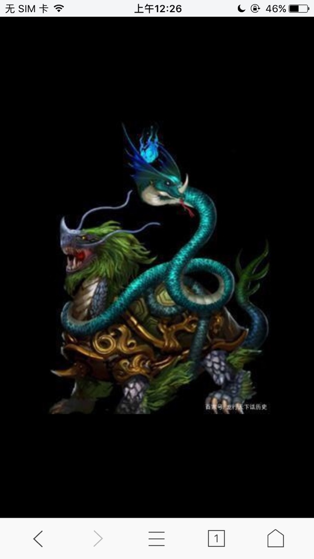夜空中的星月(作者)玄武拥有两个头,一个是龙头,却没有角,另一个头是在尾部,形状似蛇。