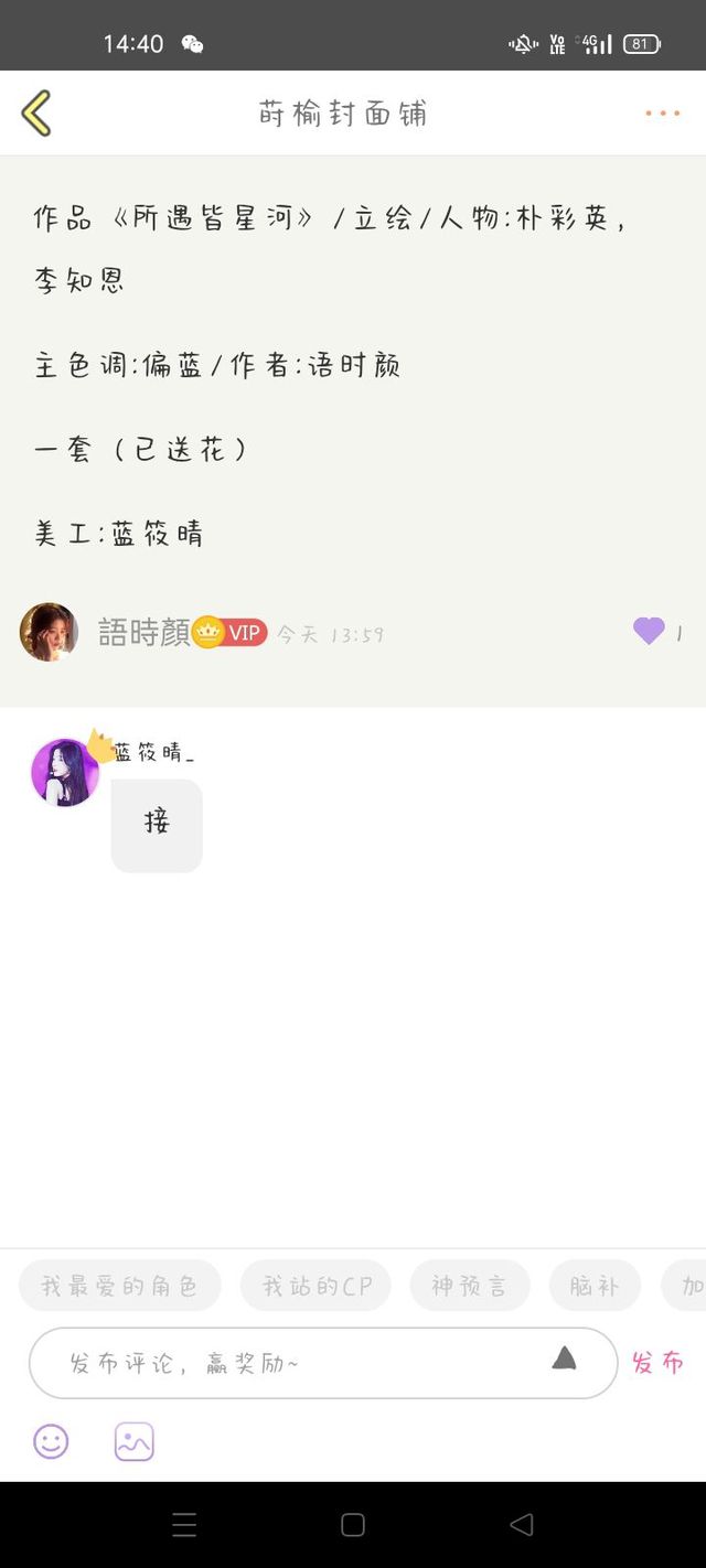 蓝筱晴无偿立绘一套出单