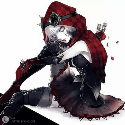 穿着黑红色短裙,黑红色长腿靴