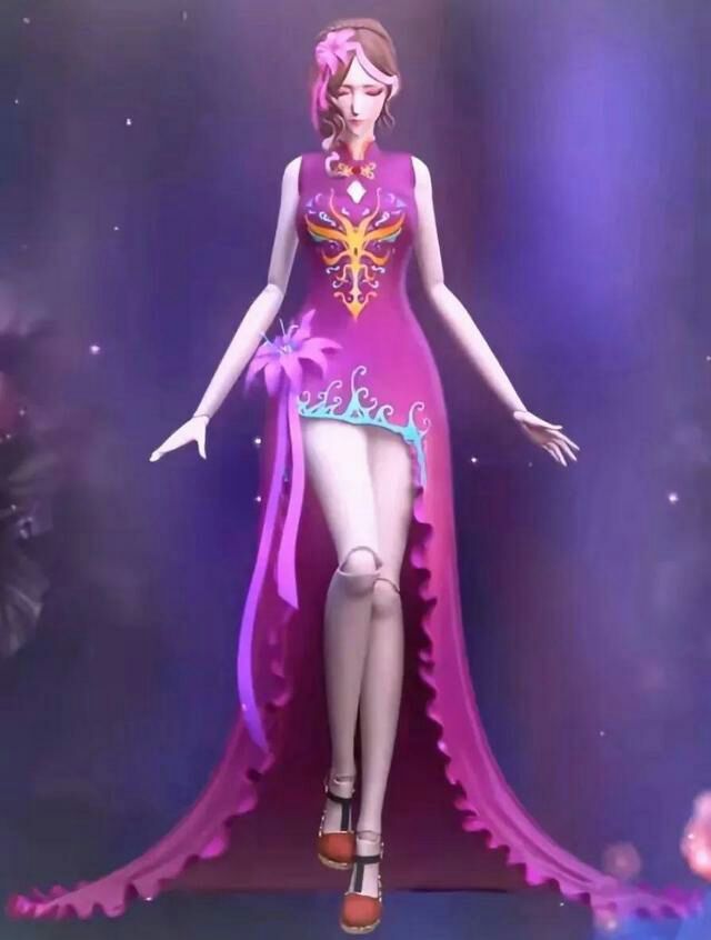 美丽妖艳的女人,一身紫红色拖地长裙,细腰长腿,缓缓出场。