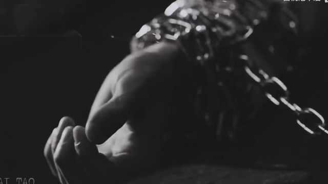 他甚至连合拢腿的权利都没有,两脚被固定在一根铁棍子的两端,让人脚腕发麻。