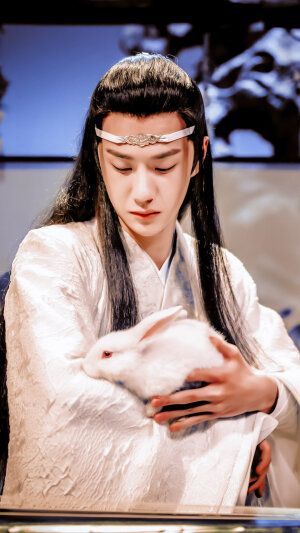 不知从何处而来一男子,头戴一抹额,温柔抚摸怀中小兔儿,眼底里是数不尽的温柔体贴神意,剑眉星目,高挺鼻梁本就令人难以接近,而现在转化为乖乖邻家男孩,试问天下谁不爱?弯弯唇角眼眸中好像含着万千辰星,耀眼夺目璀璨极了,身穿一蓝色云卷纹长衣,纤纤细长手可是比女孩儿还要美上几分,而那只美手正揉着兔兔的绒毛,忽然间抬眸一见,便见到了自己朝思暮想的女子。