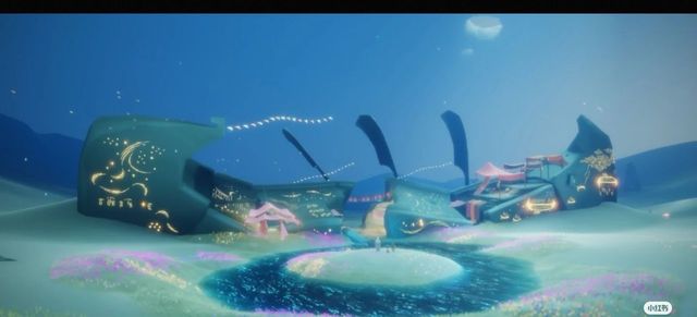 梦幻的蓝色星空,绽放的魔法花朵,仿佛突然有了生机一般的方舟,它的船桨在空中自由地划动着,俨然是一座大漠之尽的魔法王国。