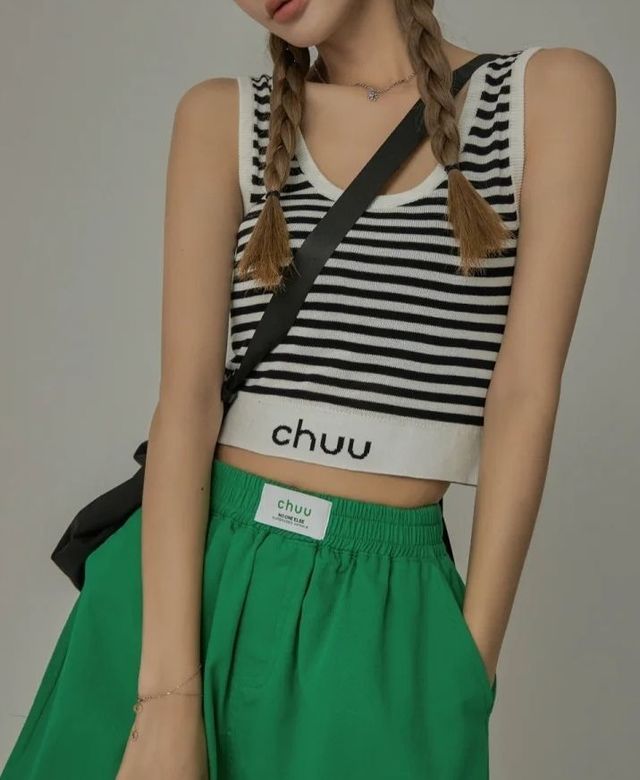 简单的无袖小背心和绿色热裤无声的衬托着纤细的手臂和小蛮腰还有那双吸睛的大长腿,朴曦月站在阳光下仿佛会发光