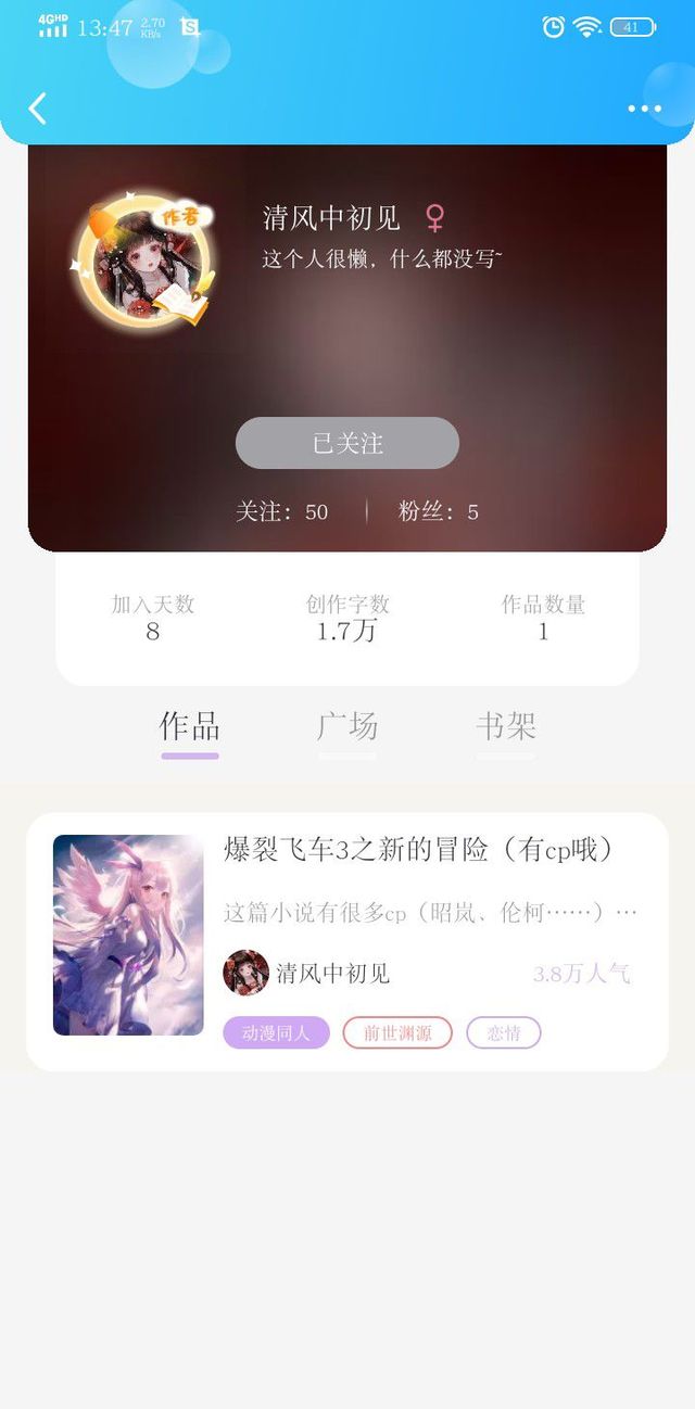 作者还有一位大大的小说,我来推荐一下: