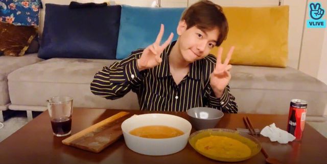 因为在抹奶油所以边伯贤旁边原本那个男生的位置就空下来了。