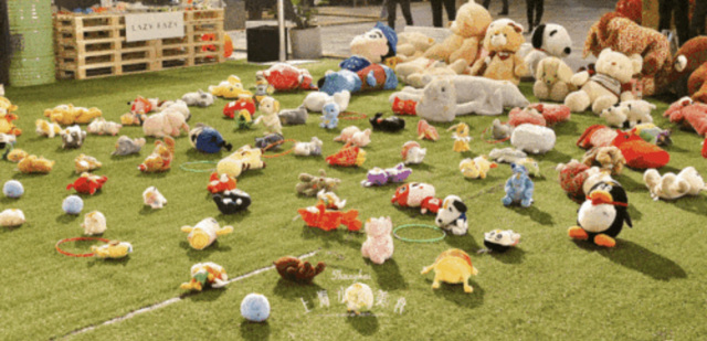 最后一个圈了,在众人注视下,红色的圆环在空中画出了一条完美的弧线,稳稳的落到了史努比的耳朵上。