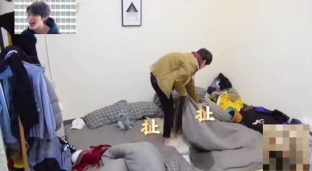 床上明显突出来的一大团颤颤巍巍,还一直碎碎念几句佛祖保佑,看不到我,看不到我。