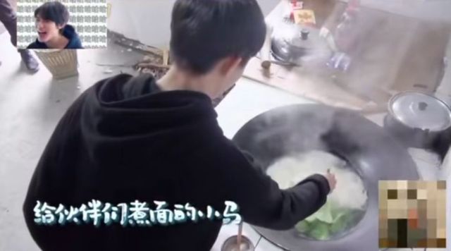 而另一边厨房里的马嘉祺在柜子里找着面条🍜要煮。